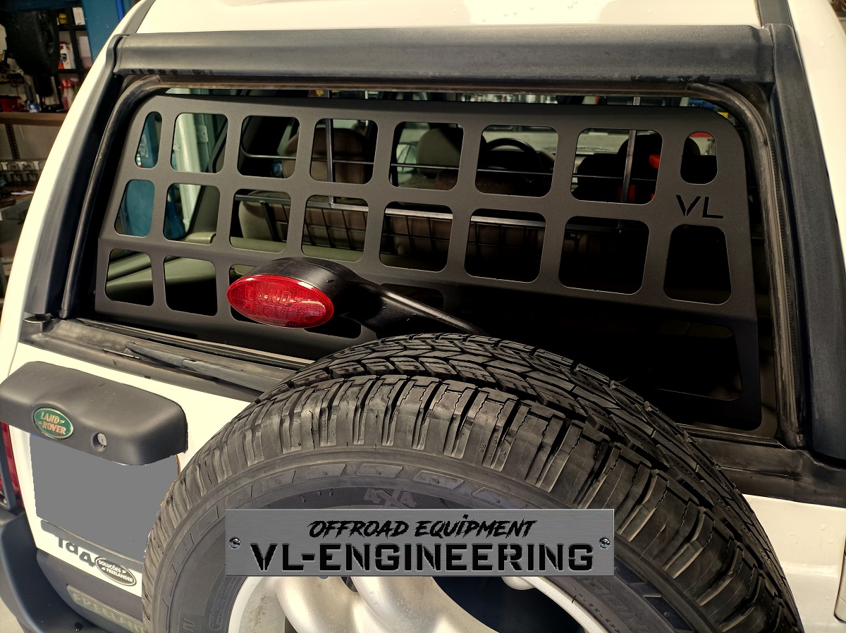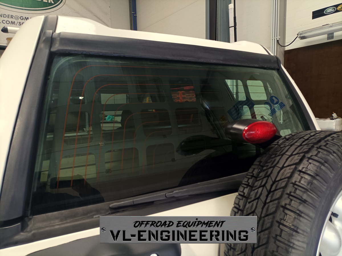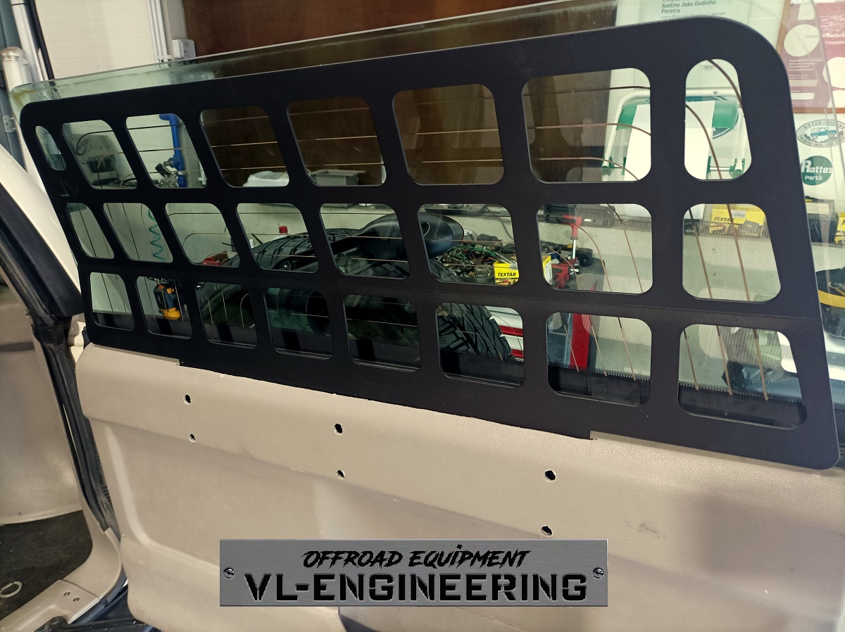 Grade de proteção para vidro da porta traseira, executada em alumínio marítimo de 3mm e acabamento lacado a preto texturado, incluíndo acessórios de montagem. NOTA: Necessita recorte da quartela da porta para fixação.