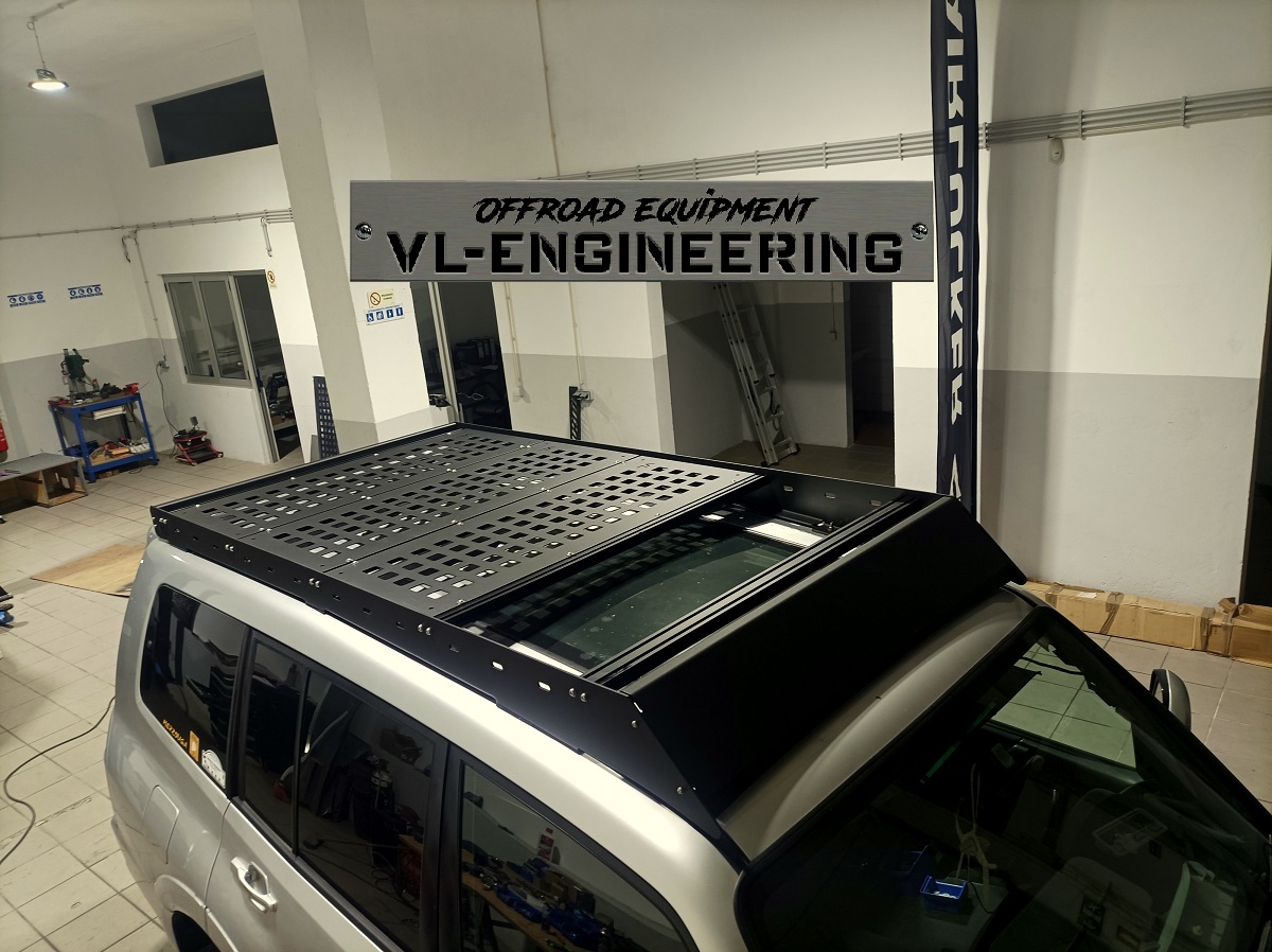 Grade de tejadilho em alumínio marítimo de 5mm, composto por duas laterais, deflector frontal e defletor traseiro, com acabamento lacado preto texturado (opção de ter suportes de barra led na frente e na traseira), cinco travessas intermédias em perfil técnico com acabamento preto acetinado. Incluí todos os acessórios de montagem em aço inox.