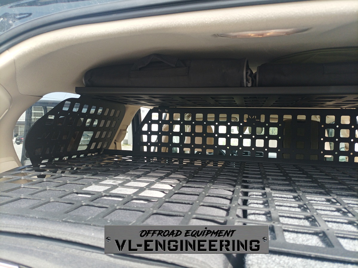 Prateleira interior em alumínio marítimo de 3mm para a zona da bagageira, com acabamento lacado preto texturado, inclui acessórios de fixação em inox;