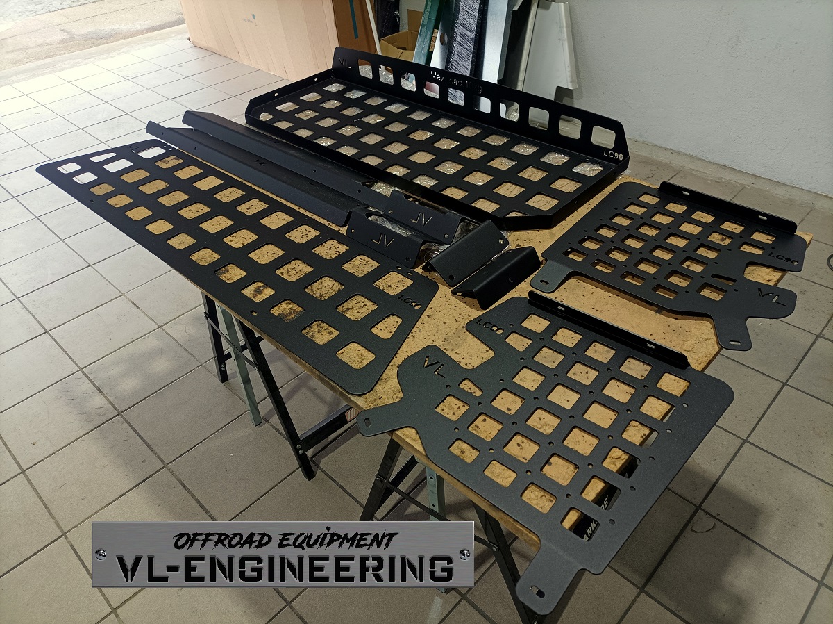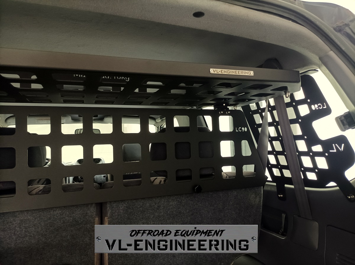 Prateleira interior em alumínio marítimo de 3mm para a zona da bagageira, com acabamento lacado preto texturado, inclui acessórios de fixação em inox;