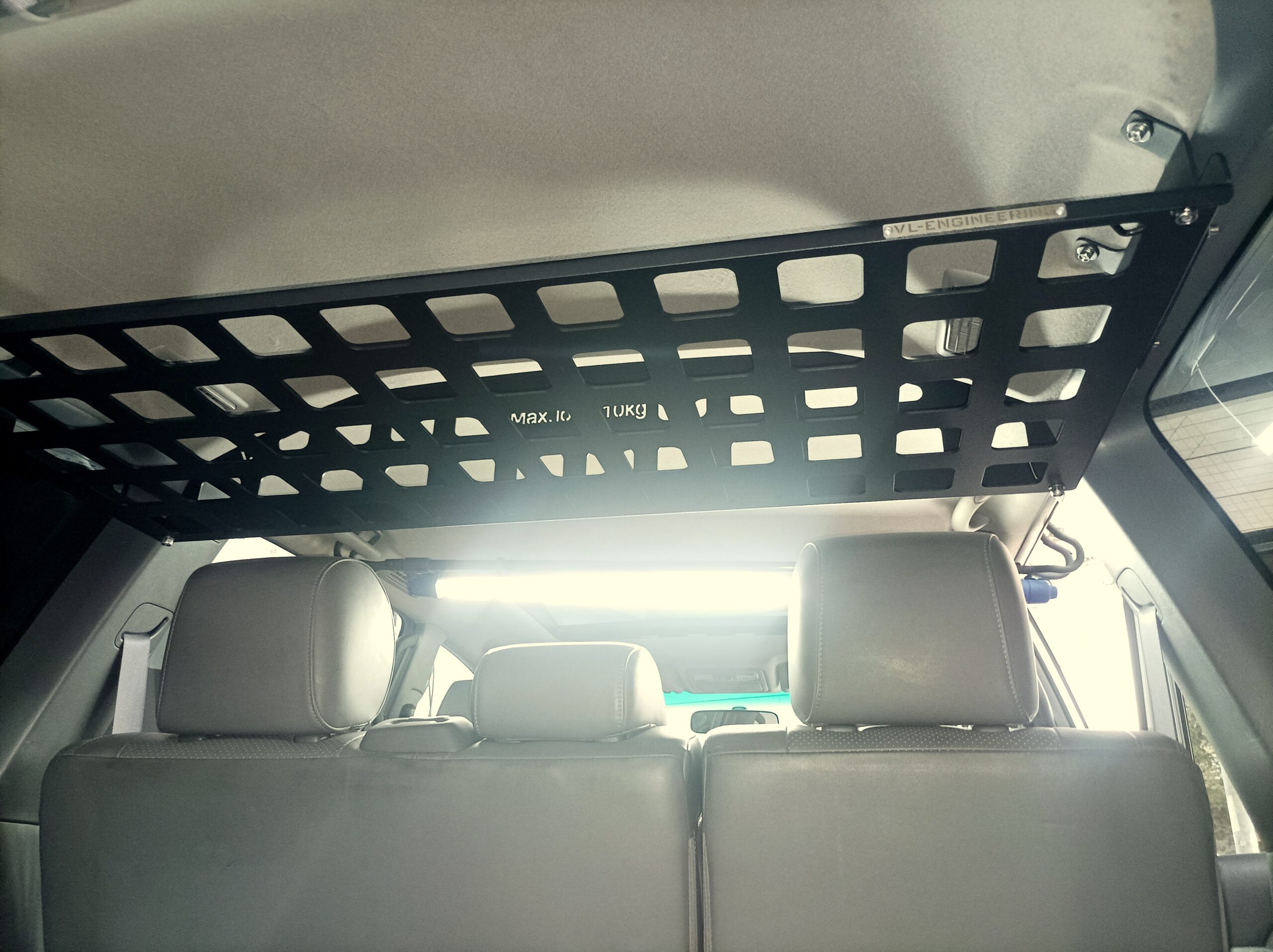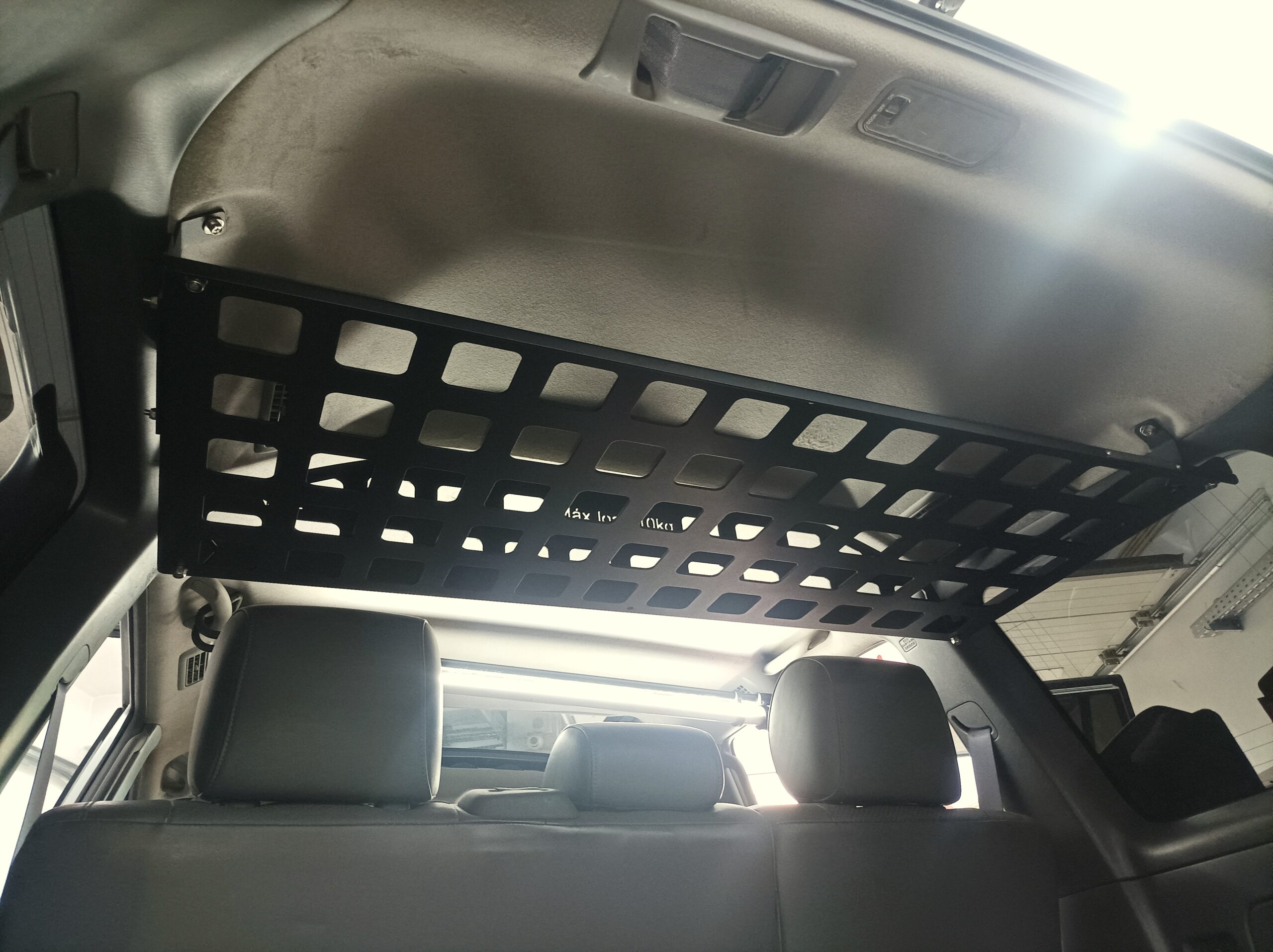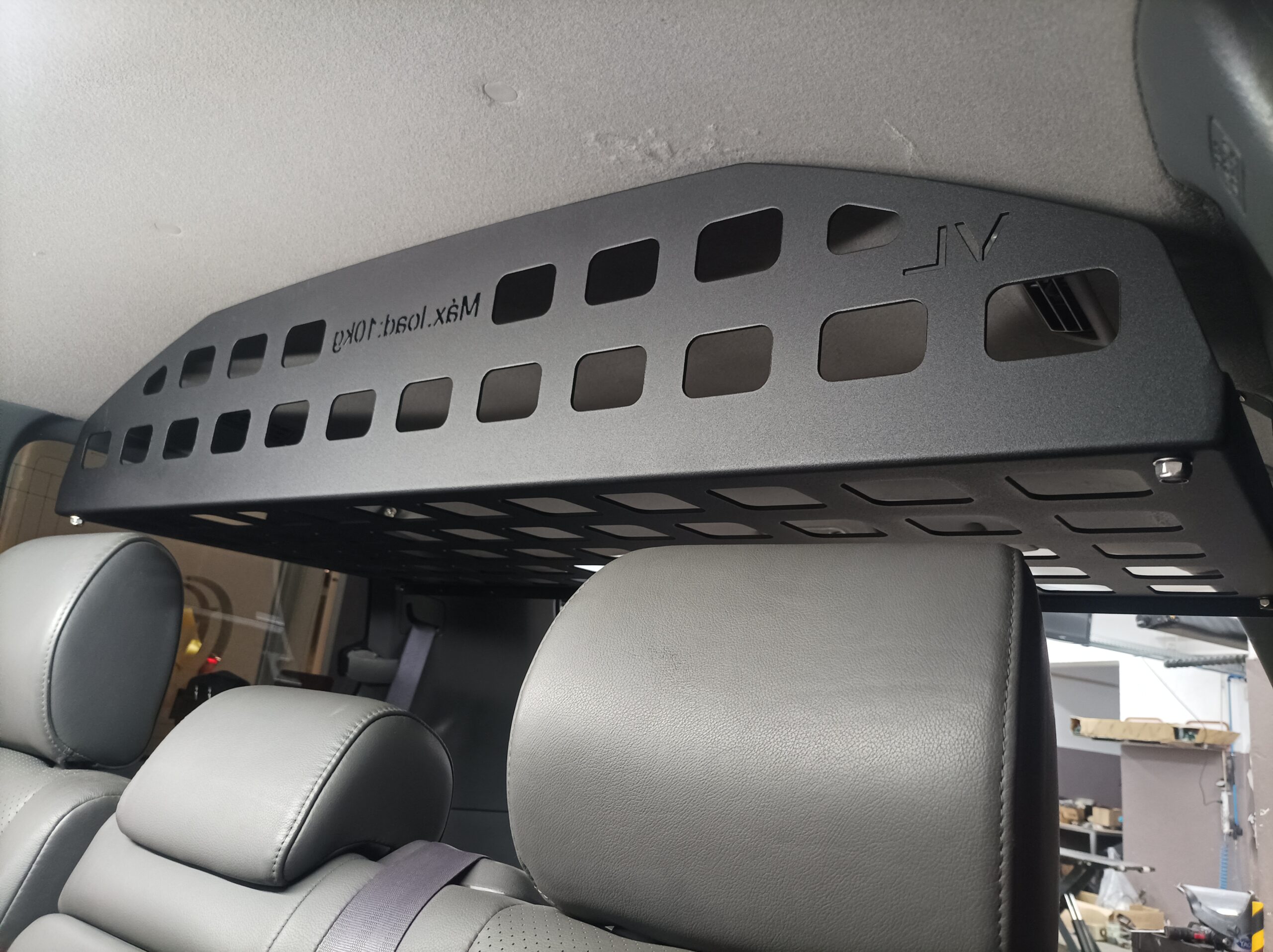 Prateleira interior em alumínio marítimo de 3mm para a zona da bagageira, com acabamento lacado preto texturado, inclui acessórios de fixação em inox;