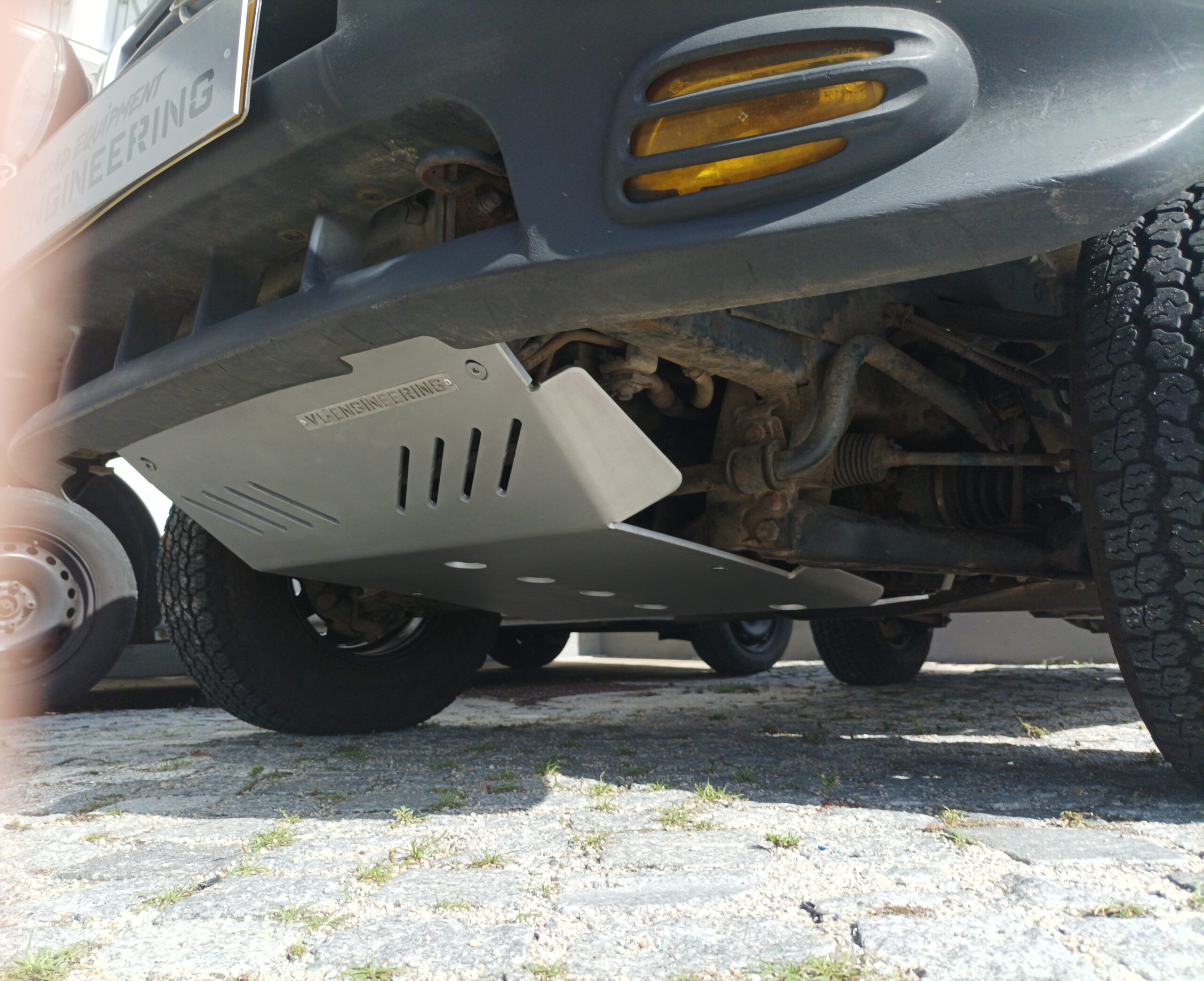 Proteção frontal em alumínio marítimo de 8mm, acabamento escovado, inclui todos os acessórios de montagem.