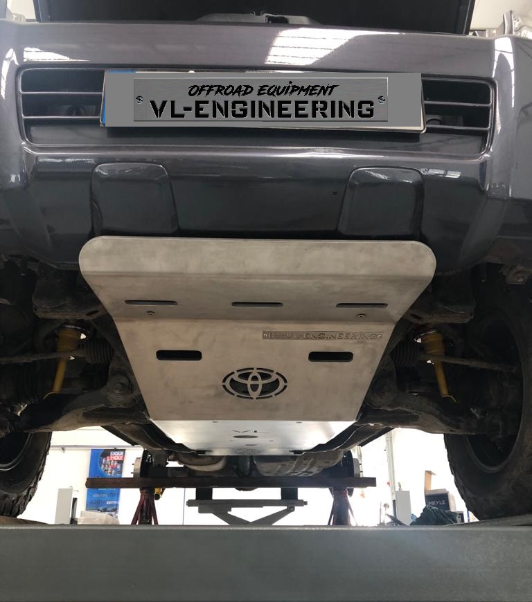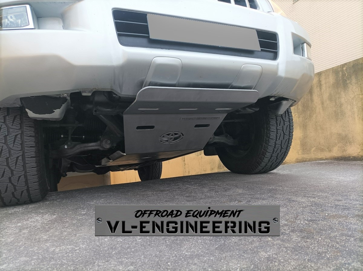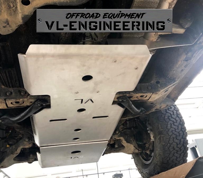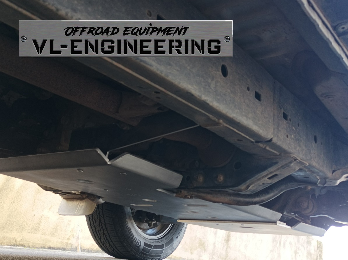 Kit de proteções composto por três peças em alumínio marítimo de 6mm com acabamento escovado, peça frontal que protege radiador e motor, proteção do viscoso e proteção do diferencial traseiro, incluíndo todos os acessórios de montagem;